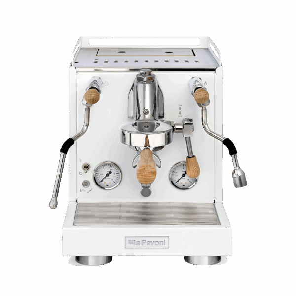 La Cellini Evolution White de La Pavoni combina diseño italiano y rendimiento profesional en un elegante acabado blanco mate con detalles en roble. Perfecta para quienes buscan calidad y estilo en cada taza.